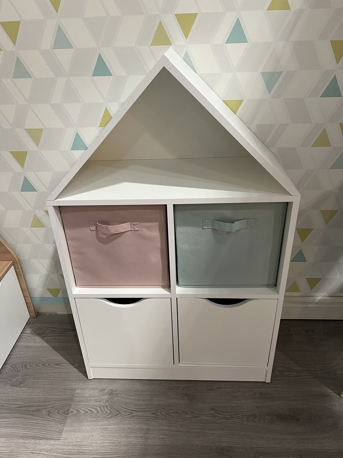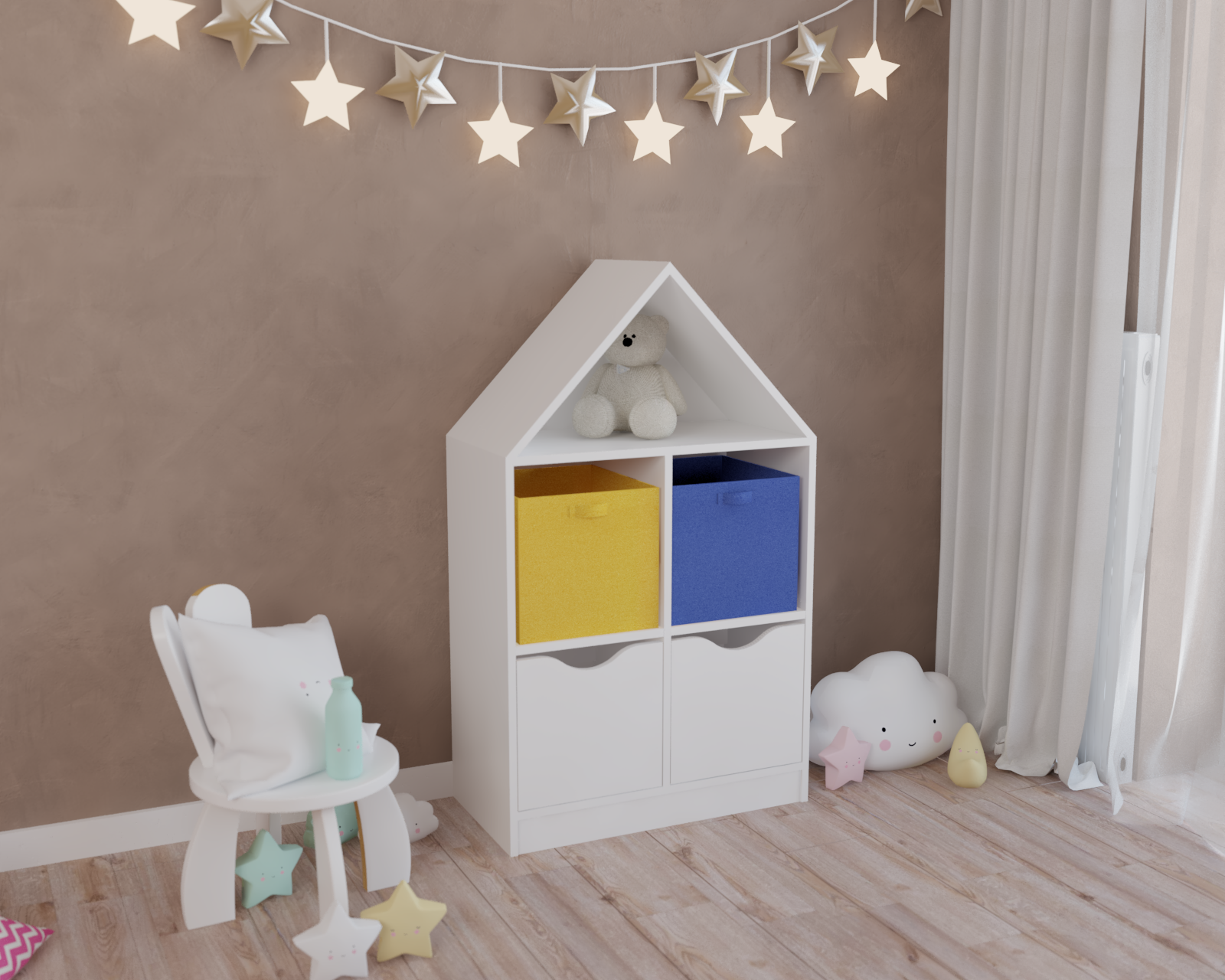 Стеллаж в виде домика - оригинальное и практичное дополнение в интерьере детской комнаты.