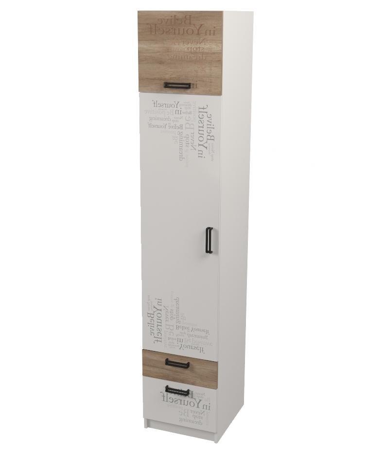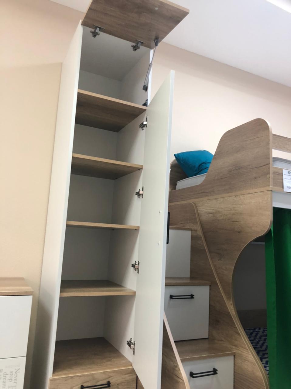 Мебель выполнена из сертифицированного, качественного, экологически чистого ЛДСП Е0,5 в сочетании цветов "дуб каньон + белый" и оформлена дизайнерским принтом.