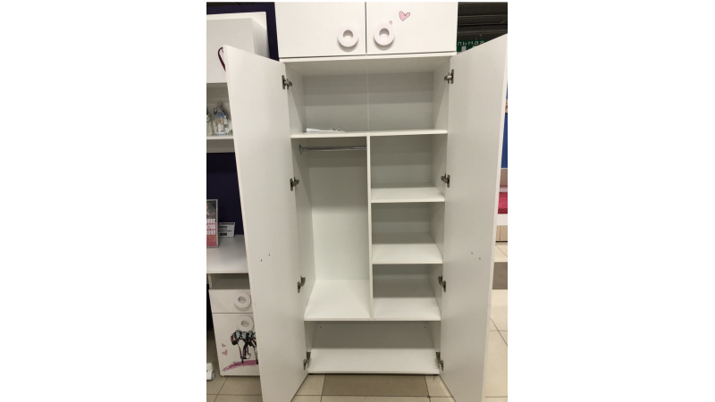 Шкаф выполнен из сертифицированного, качественного, экологически чистого российского ЛДСП в белом цвете.