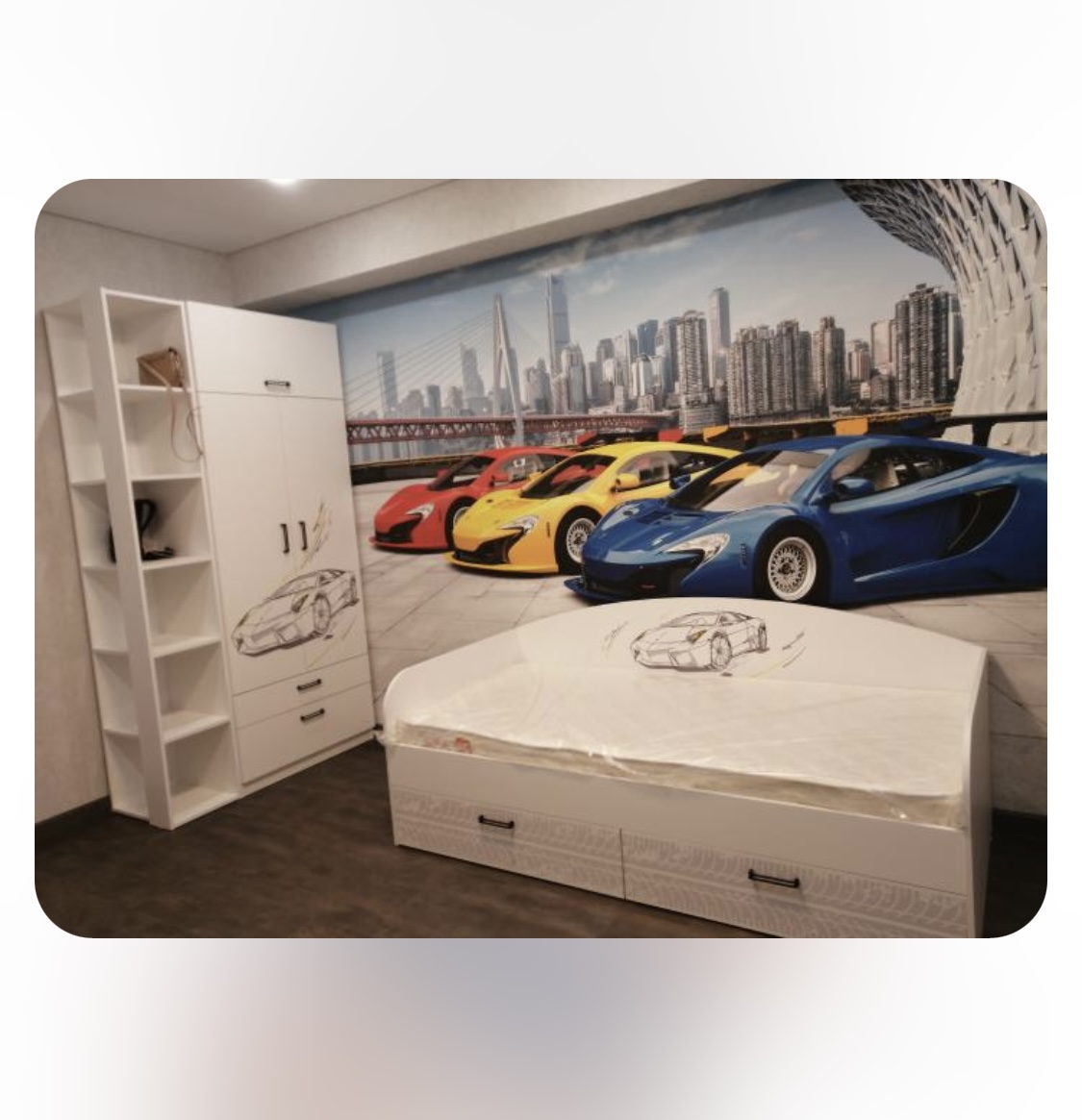 ЛДСП Е0,5. Толщина 16 мм. Цвет белый + дизайнерский принт |