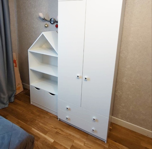 <comment>Заказывали ребёнку шкаф и кровать белого цвета. Оттенок цвета очень приятный, материал супер, ручки шкафа удобные и крепкие) отдельное спасибо доставке и мастеру по сборке, за оперативность.</comment>