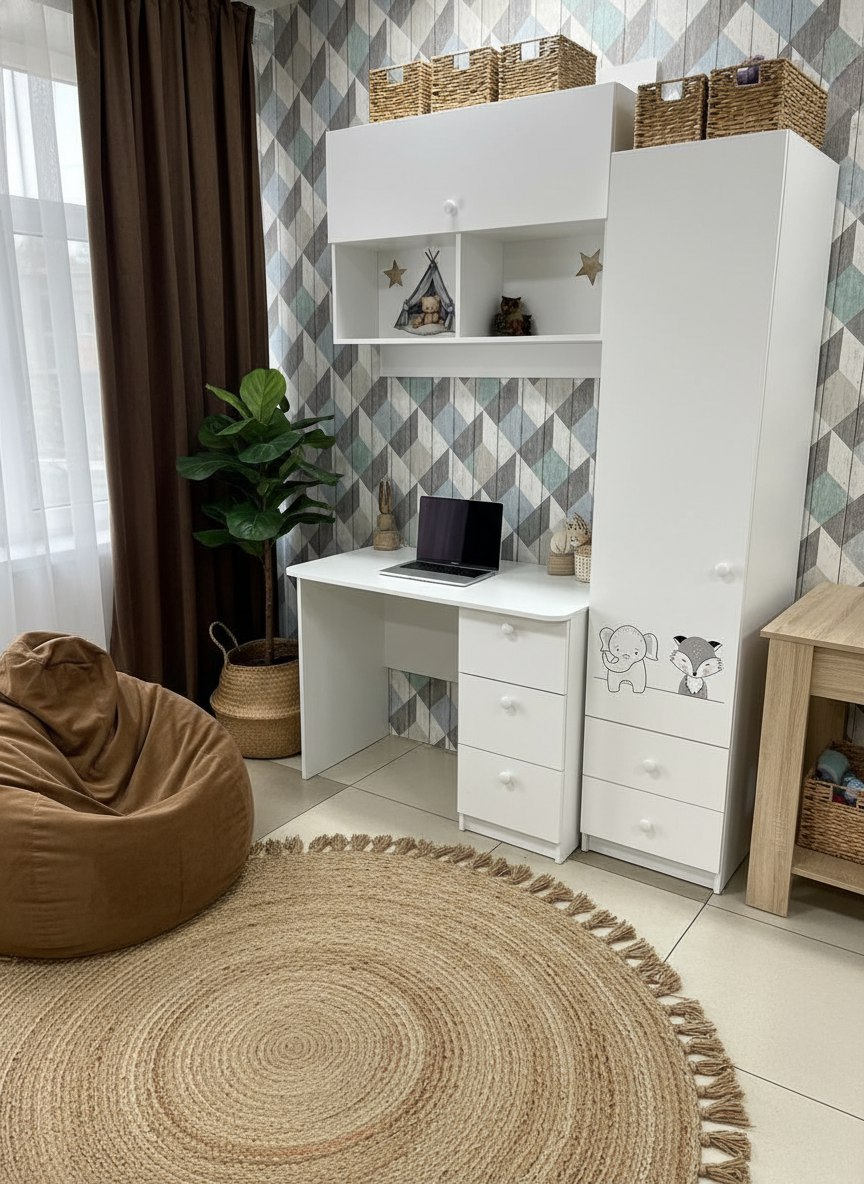 Материал: сертифицированное, качественное, экологически чистое российское ЛДСП Е0,5 в белом цвете с дизайнерским принтом.