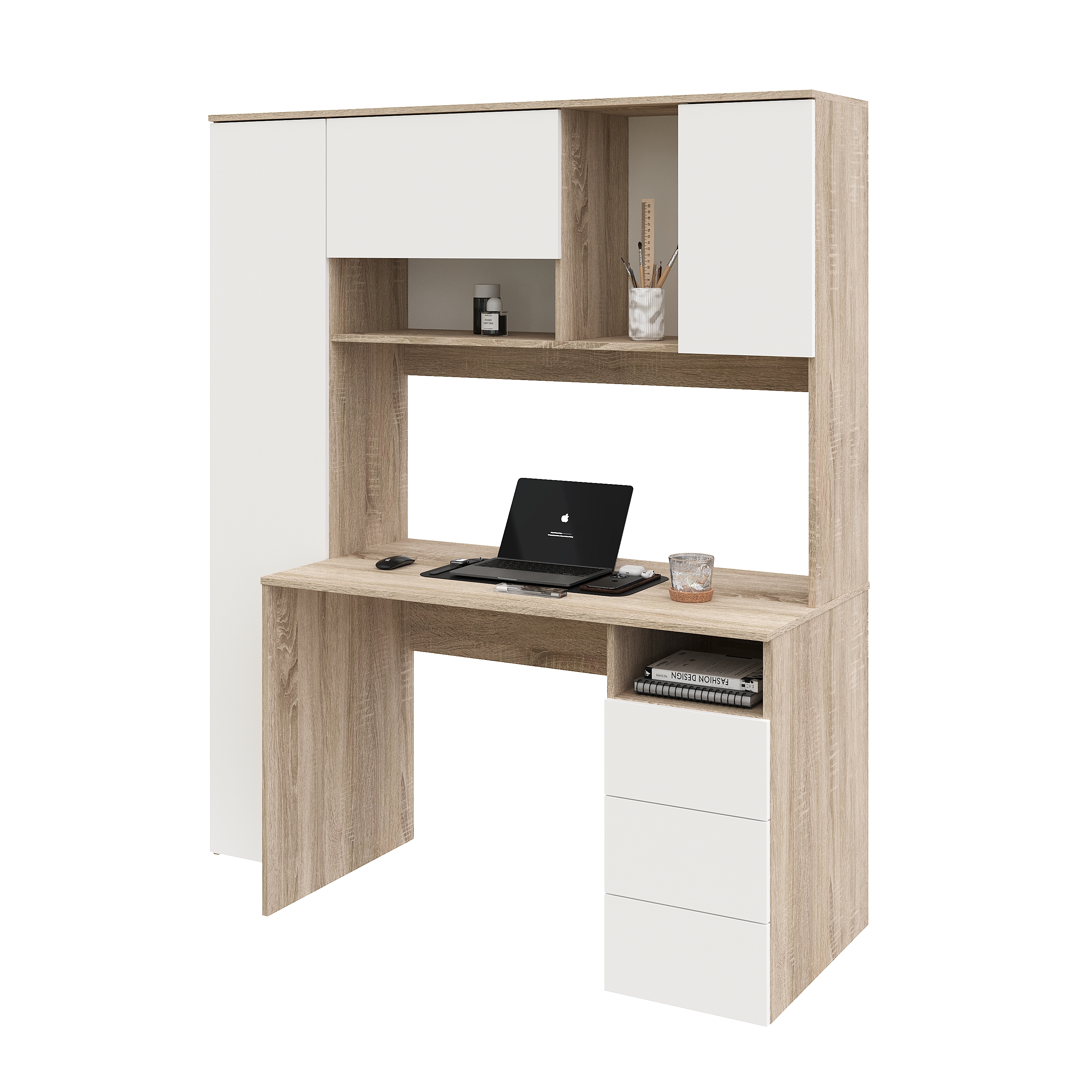 Просторная поверхность, удобные полки и ящики позволят разместить учебники, книги и канцелярию.