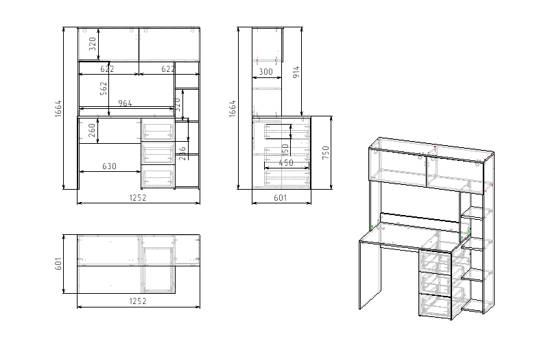 Габариты стола: ширина 1250, глубина 600, высота 1665 мм