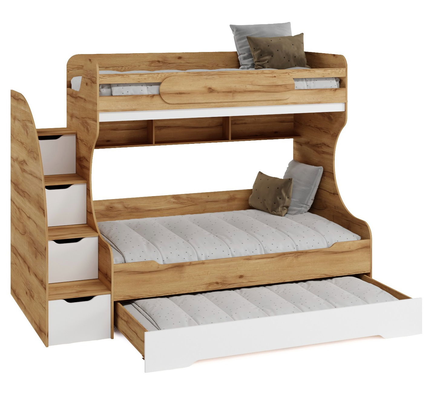 Увеличенное нижнее спальное место позволяет комфортно разместиться ребенку вместе со взрослым.