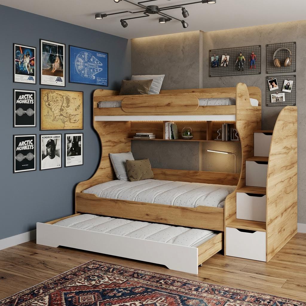 Вместо них - цельный и прочный настил из ЛДСП, который выдерживает сверхвысокую нагрузку и позволяет расположиться даже взрослому с ребенком.