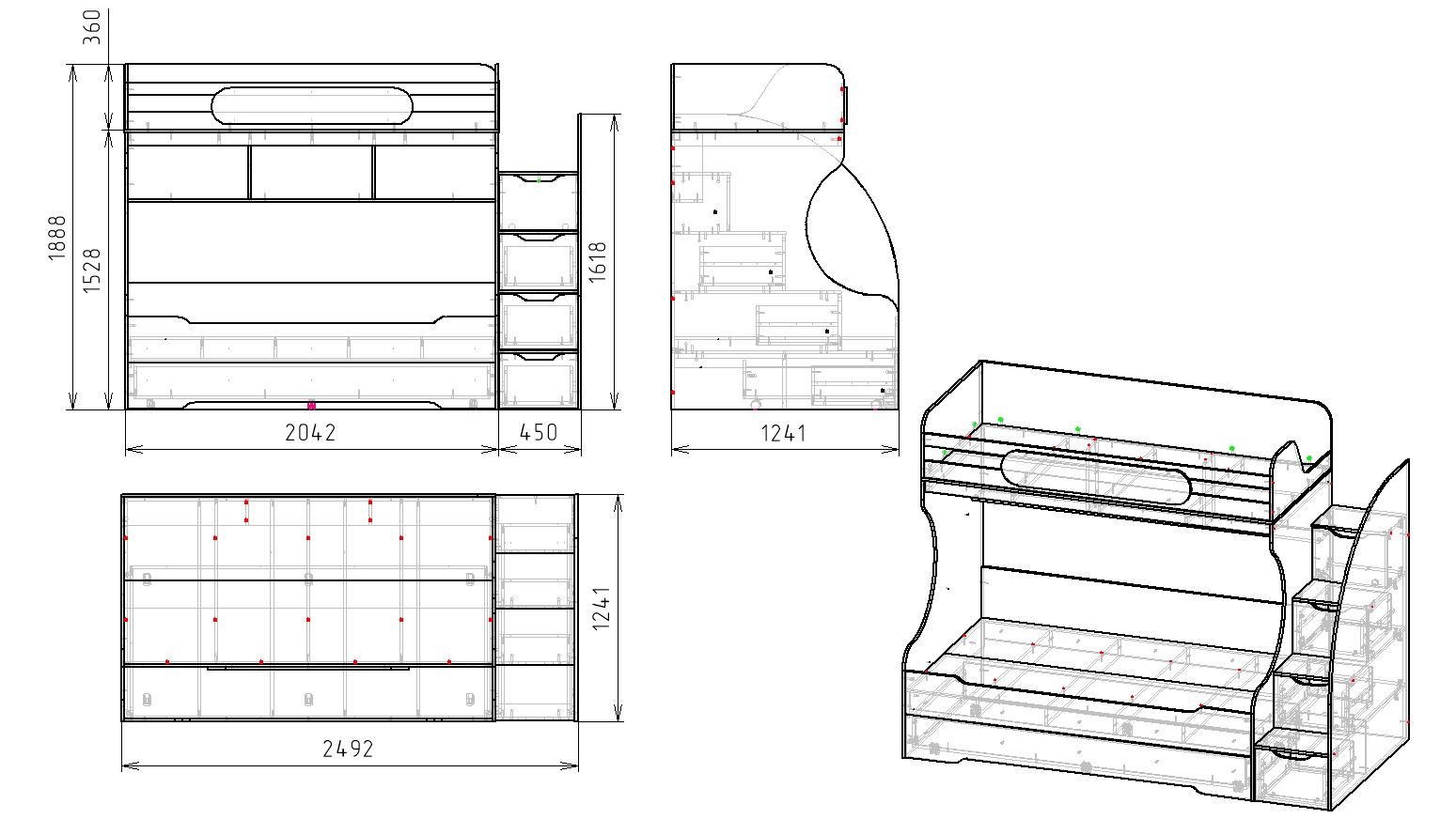 ширина с учетом лестницы 2493, глубина 1241, высота 1922 мм