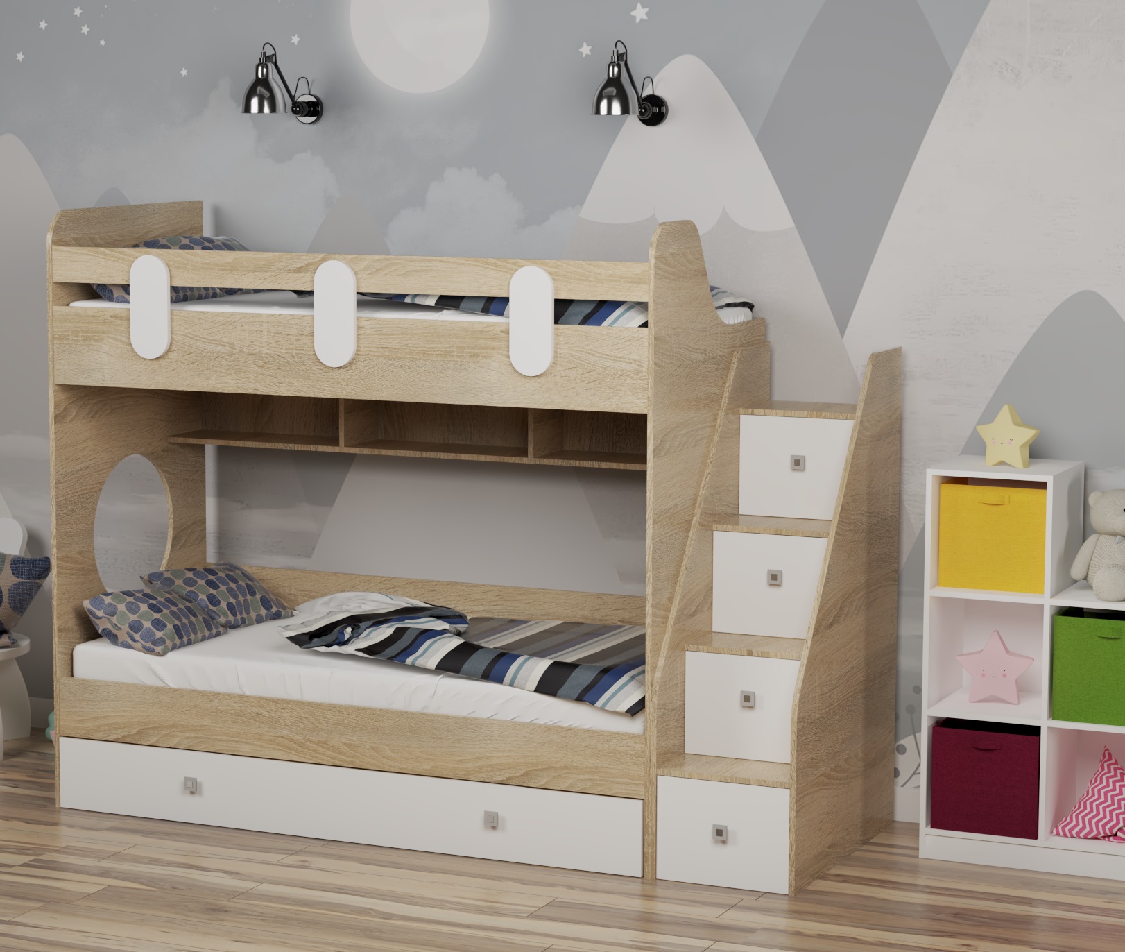 Высокая нагрузка на спальные места. Прочные ящики! Высокий, безопасный бортик |