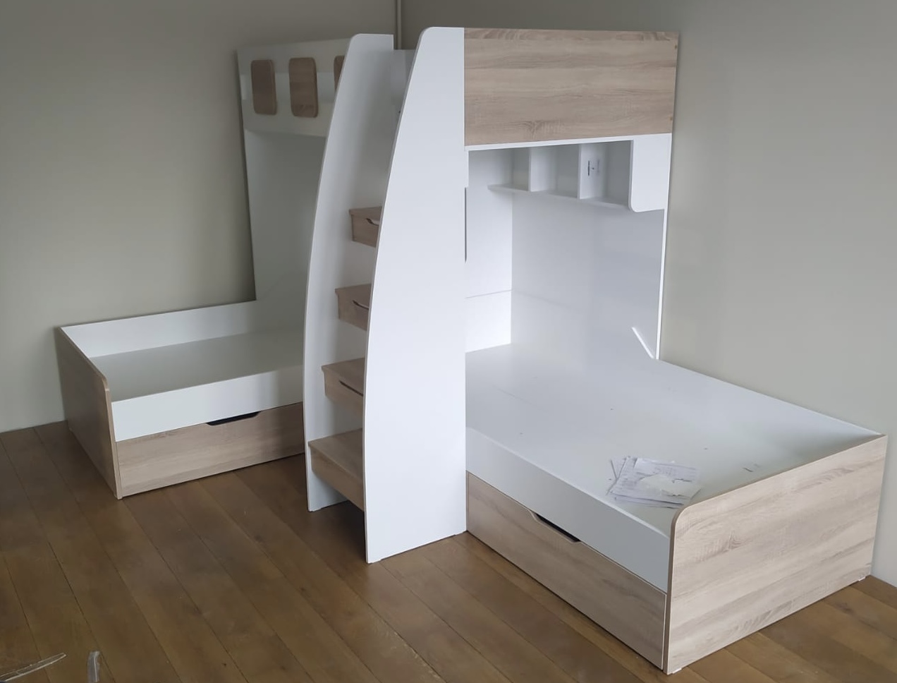 Вместо них - цельный и прочный настил из ЛДСП, который выдерживает сверхвысокую нагрузку и позволяет расположиться даже взрослому с ребенком.