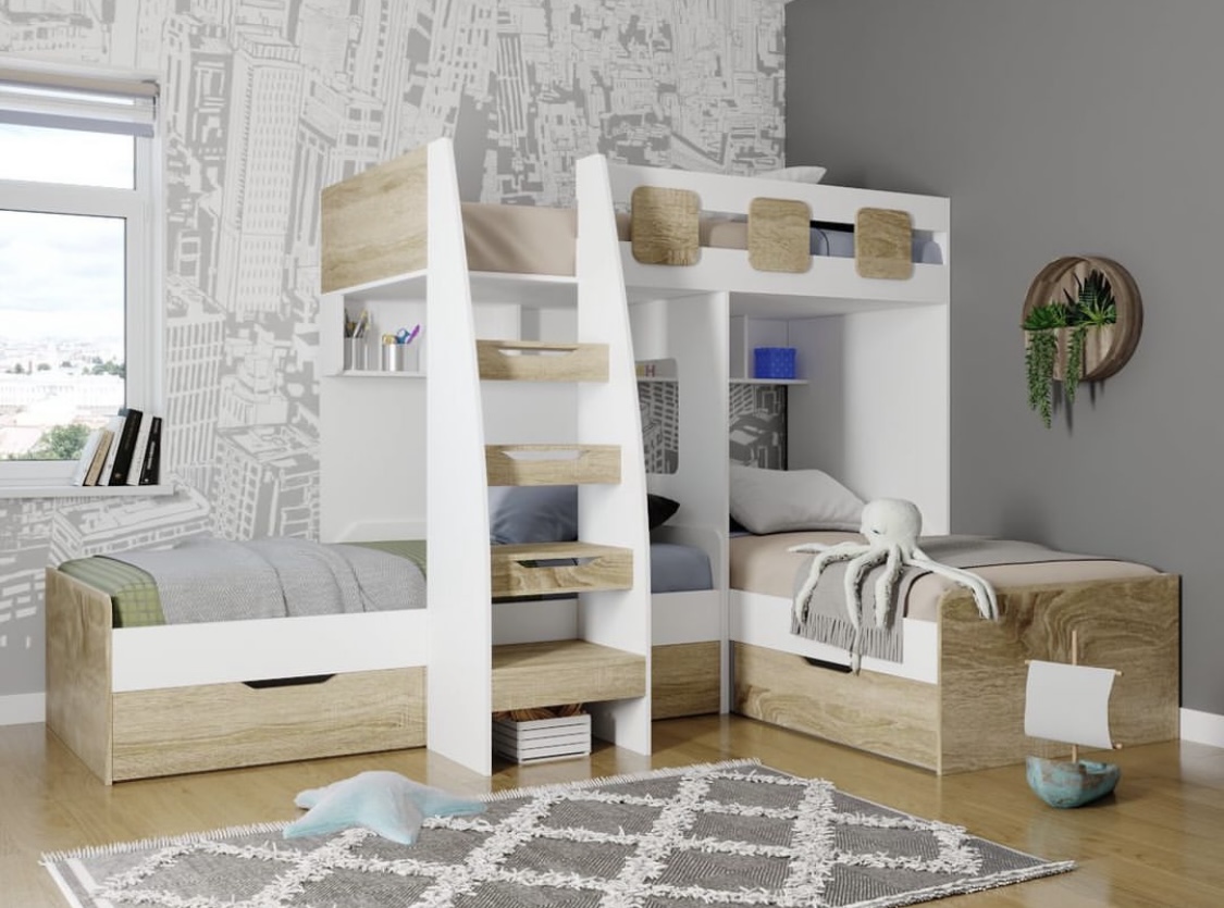 Цвет—Кровать 3-х ярусная Династия - цвет Белый+Дуб Сонома